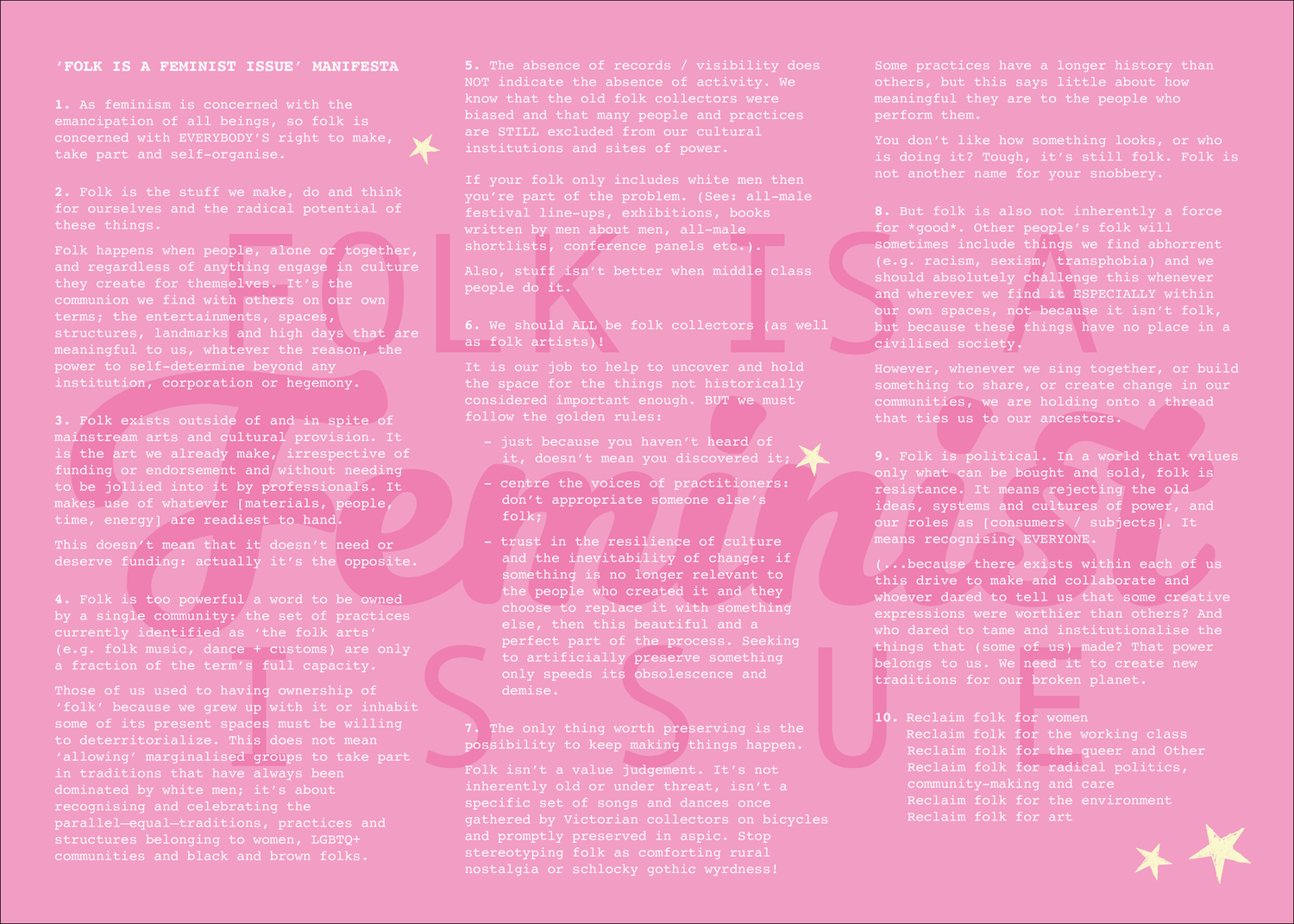 - Folk is a Feminist Issue/ Folk Manifesto – Lucy J Wright