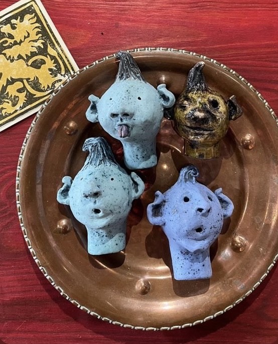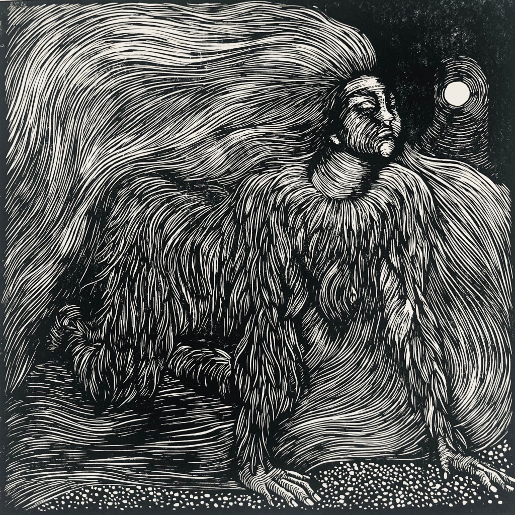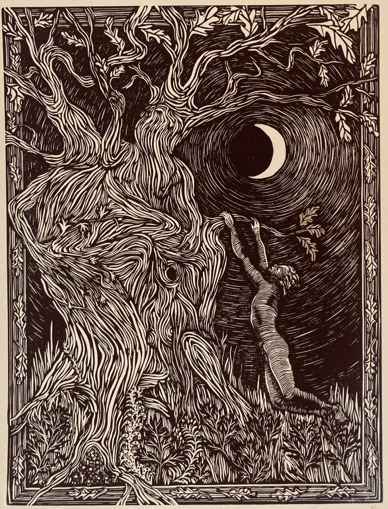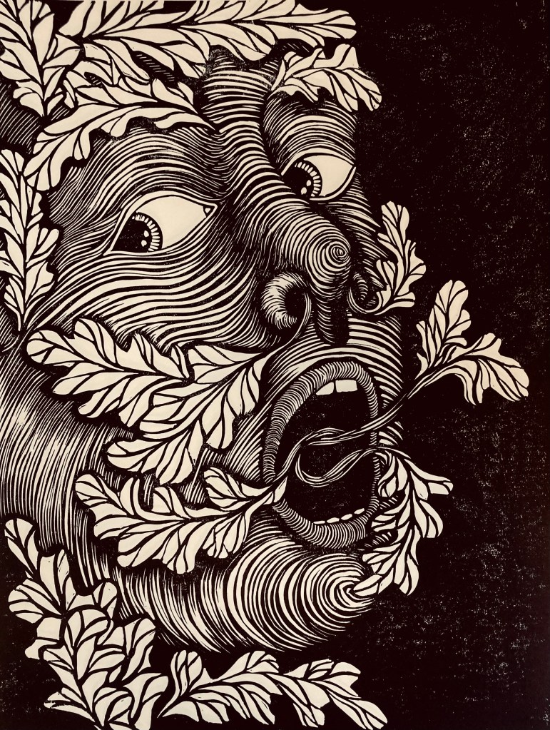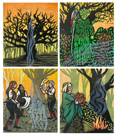 I am a printmaker working with relief techniques on both paper and ceramics, drawing on motifs rooted in mythology, folklore, and esoteric histories. Recent bodies of work reference archetypal figures such as the wodewose and the green man, as well as medieval mystics and inhabitants of imagined woodland spaces. I am interested in the dialogue between landscape, memory, and symbolic narrative, often informed by vernacular flora, fauna, and rural iconography.