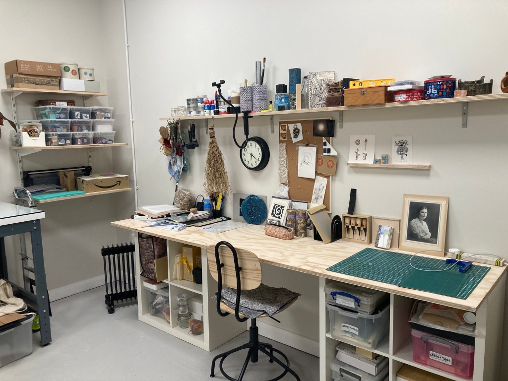 Another vital element to my research plan is to make informal but comparative studies of other residency spaces and places in which artists are trying new things to make connections with local history, folklore, ecology and heritage crafts. The spaces I have chosen to visit include Field System in Dartmoor presenting Folk inspired art and objects – who I have an existing relationship with (they sell my work in their shop) and might like to develop a collaborative project in the future; Cambridge Botanic Garden who have recently hosted artist Nabil Ali to create a Plant Dye Index; Val Turton is an artist based in Nottingham who has been providing impromptu residencies in her allotment space 326 artspace in St Ann’s for artists and gardeners alike. I value her advice and support and would benefit from her mentorship.